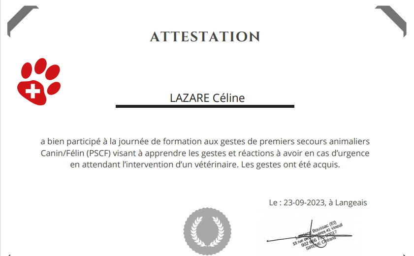 Complément : Formation d'Auxiliaire de Santé Animal Option Zoologie et AFPS